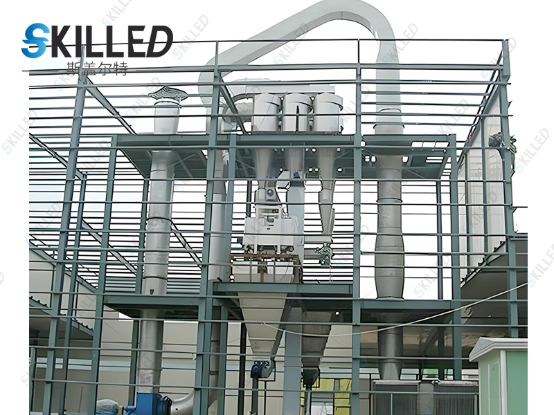 底部强化器设计,搅拌齿为菱形,其流线性能使风阻达到小,设置在圆锥形料斗内,分动刀和定刀,粉碎效果显著,使下落的结块物料迅速粉碎为适合气流干燥的粉粒料,搅拌的另一个主要作用是分散物料,加大了 与料斗下面进来的高速热风的接触面积,于是料斗区形成了一个强烈传热传质的流化床,大部分湿分在料斗区被干燥。随着干燥的进行,变轻变细的干料受气流作用明显,与气流一起上升并进一步干燥,后从干燥塔顶部出来进入物料收集系统。
